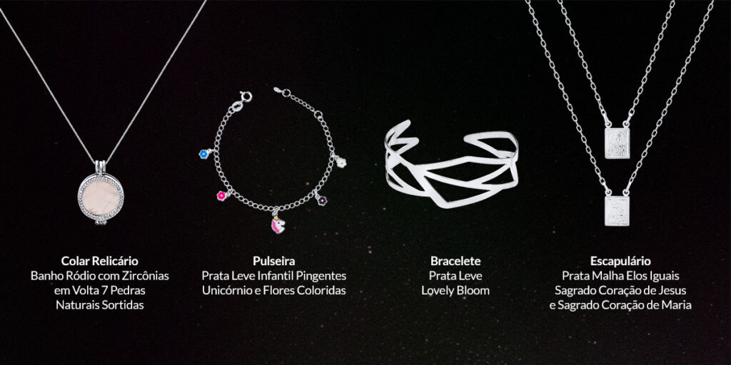 Para eles, o destaque vai para as pulseiras de prata com design moderno, escapulários e anéis discretos, que transmitem força, elegância e personalidade. Joias que combinam com qualquer estilo e se tornam um símbolo de presença e união.