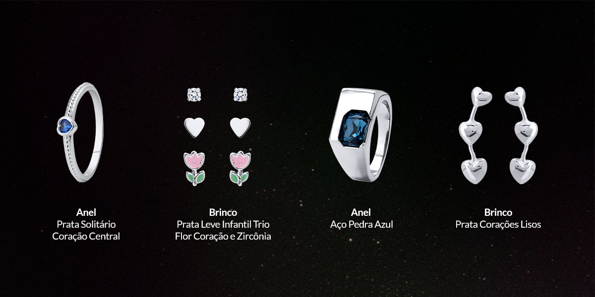 Para eles, o destaque vai para as pulseiras de prata com design moderno, escapulários e anéis discretos, que transmitem força, elegância e personalidade. Joias que combinam com qualquer estilo e se tornam um símbolo de presença e união.