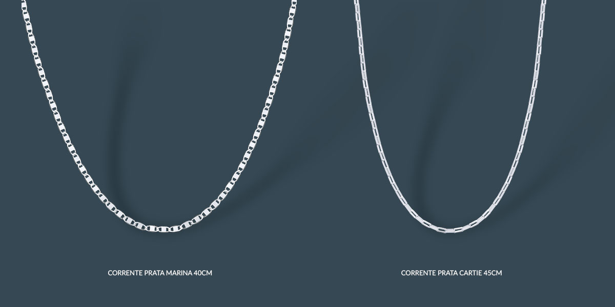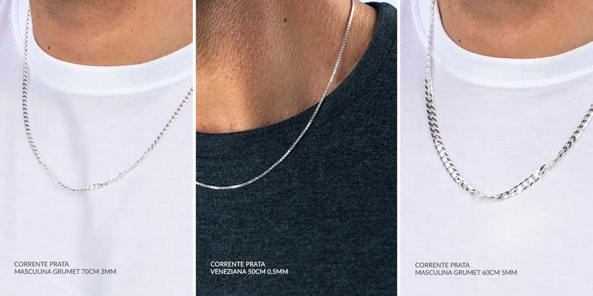 O comprimento da corrente influencia diretamente no estilo e no conforto ao usar. Veja as medidas mais comuns: