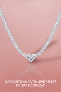 As gargantilhas mais delicadas, com pontos de luz em zircônia, funcionam para quem gosta de algo leve, que combina com tudo e não pesa no dia a dia. Já as rivieras trazem mais presença, uma linha contínua de brilho que valoriza o colo sem precisar de muito mais.