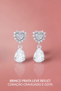 O coração aparece de forma mais direta, marcando presença e trazendo esse lado mais afetivo. A gota deixa tudo mais leve, mais delicado, com movimento. Já o cravejado puxa mais brilho, mais destaque, é o tipo de peça que aparece mais no look.